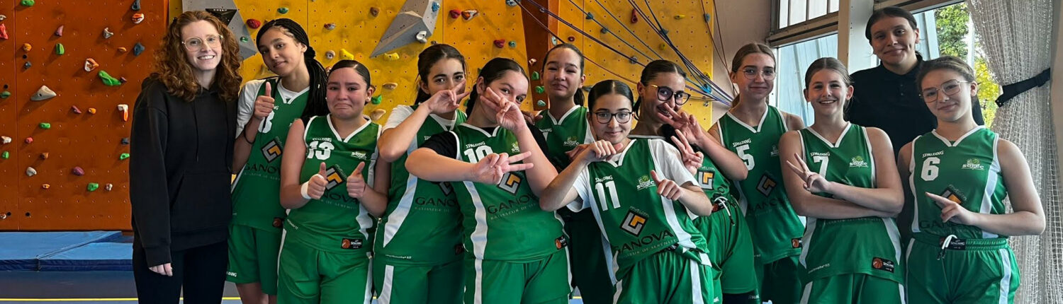 Lors de ce match les filles ont de nouveau été présentes en défense et ont de plus bénéficié d’une belle réussite sous la panier, ce qui leur a permis de prendre de l’avance au score. Elles se sont fait une petite frayeur au troisième quart-temps où leur engagement défensif leur a valu beaucoup de fautes individuelles mais elles ont su retrouver l’énergie nécessaire pour se mettre à l’abri lors de la dernière période. Une victoire qui récompense les efforts et l’application à l’entrainement, et que l’équipe a pu partager avec Ambroise Couture, leur parrain de NM1, qui était venu assister au match: merci à lui!