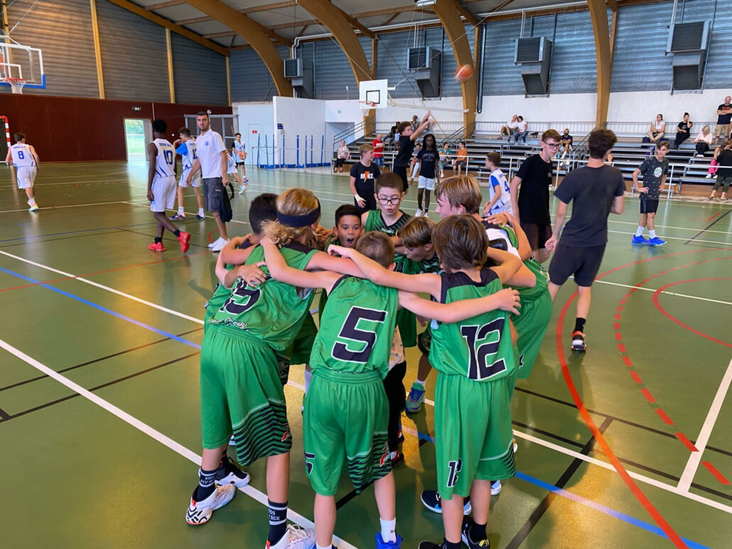 Les U13M font partie des équipes qui ont repris le plus tôt puisque les garçons étaient conviés sur le terrain dès le 22 août! Ils ont dès lors commencé une préparation physique et technique afin de se rapprocher au plus vite des attendus dans leur catégorie. Le weekend dernier, 10 joueurs ont pu participer au tournoi de Corbas et ainsi mettre en application ce qu’ils ont travaillé à l’entrainement. Ils ont affiché une belle cohésion de groupe dans l’état d’esprit mais le collectif a quelque peu souffert du fait qu’ils n’ont pas encore l’habitude de jouer ensemble et ne se trouvent donc pas toujours facilement sur le terrain. Bien que l’équipe soit nouvelle et que certains enfants découvrent de nouvelles règles non en vigueur dans le mini-basket, les garçons ont su s’adapter et s’entraider pour finir vainqueurs du tournoi! Les joueurs, leur coach Alicia et les parents ont passé une excellente journée ensemble et le bilan est très positif en vue du démarrage du championnat samedi 23 septembre, même s’il reste évidemment du travail pour atteindre les objectifs que les U13 se sont fixés!