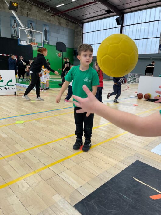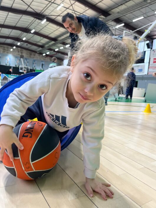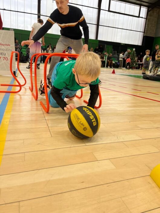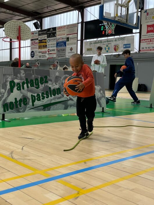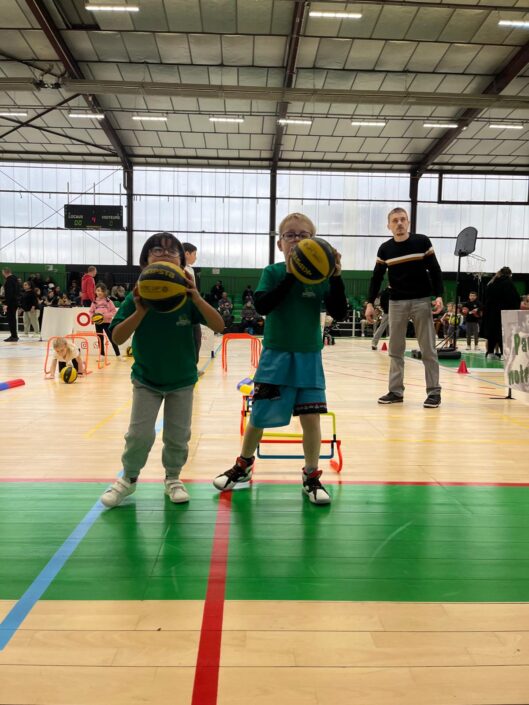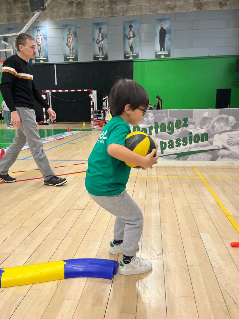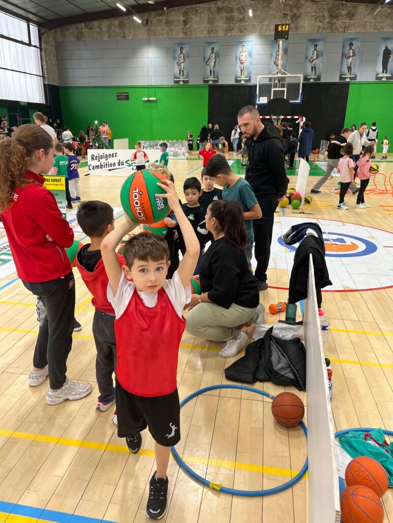 Chacun des ateliers était animé par des jeunes volontaires ou des parents. Les enfants ont navigué sur différents jeux de Noël qui leur demandaient de dribbler, de tirer, de passer ou encore de ramper et de grimper. Que ce soit des parcours moteurs ou des jeux d’opposition, tout était pensé pour que les enfants jouent au basket dans un univers magique de Noël.