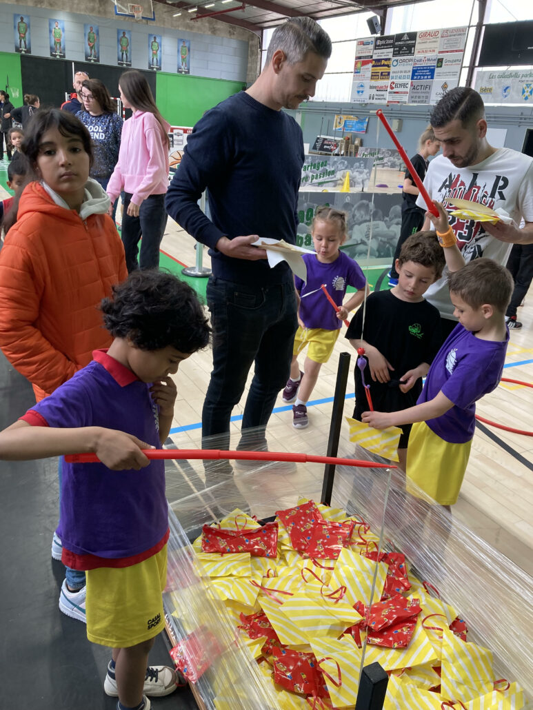 Samedi, nos deux gymnases ont été envahis par une armée de petits minions venus participer au plateau Baby organisé par le SOPCC. Ainsi, une soixantaine d’enfants issus de notre club ainsi que des clubs voisins de Meyzieu, Jonage et Décines ont pu participer à une aventure sur le thème des Minions. Les enfants se sont adonnés à des jeux de dribbles, de motricité, de mémoire, de déplacements ou de tirs répartis en 8 ateliers avec une petite pause bien méritée à mi-parcours! Cette récréation a permis de remplir les estomacs des petits et des grands selon leurs goûts: hot-dogs, frites, crêpes ou brochettes de bonbons, soigneusement préparés par les parents de nos babies et les bénévoles du club. Ce fut aussi l’occasion de jouer à la pêche à la ligne ou au chamboule-tout et de remporter des petits cadeaux. Une fois les batteries rechargées, les enfants ont pu poursuivre leur aventure basket sous le regard amusé et bienveillant de leurs parents mais aussi de trois joueurs de notre équipe professionnelle venus spécialement pour l’occasion. Ce sont d’ailleurs Théo, Maydden et Yasmin qui ont distribué les récompenses aux jeunes pousses à l’issue du plateau, avant de se livrer à une séance de dédicaces improvisée pour le plus grand bonheur des petits! Ce plateau fut une réussite grâce à la mobilisation de tous et Sylvaine, responsable U7, remercie chaleureusement les parents qui se sont impliqués ou qui sont venus encourager, les joueurs et joueuses du club qui ont aidé à l’encadrement des jeux et ateliers (et plus particulièrement les U11, U13 et U18F) et la super équipe de bénévoles présente de l’installation au rangement: bravo et merci à tous!!!